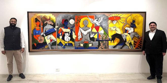 L to R Bharadwaj Mathukumilli and Hormazd Firdosh Sholapurwala Bharat Series a remarkable 12-foot-long single canvas work by M.F Husain