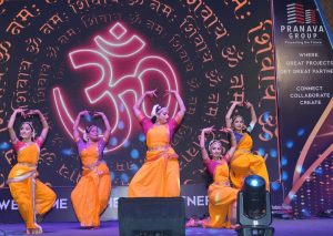 The evening commenced with Neha Gupta as Emcee, with a traditional lamp-lighting ceremony by the distinguished panellists, Rambabu Boorugu, Sandip Patnaik, Sreekanth Reddy, and Joseph Thilak symbolizing a bright and auspicious beginning. This was followed by a mesmerizing Kuchipudi dance performance, “Pranava Nadham,” capturing the cosmic resonance of the universe and setting a devotional tone for the gathering.