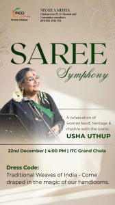 Carrying this spirit forward, FLO Chennai now presents its marquee cultural event of the season – SAREE SYMPHONY, an evening with the legendary Usha Uthup, on 22nd December at ITC Grand Chola.