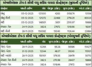 પુટ ઓપ્શન્સની વાત કરીએ તો, ક્રૂડ તેલ નવેમ્બર રૂ.5300ની સ્ટ્રાઇક પ્રાઇસવાળો પુટ ઓપ્શન બેરલદીઠ રૂ.14 ઘટી રૂ.108.1ના ભાવે બોલાયો હતો. જ્યારે નેચરલ ગેસ નવેમ્બર રૂ.380ની સ્ટ્રાઇક પ્રાઇસવાળો પુટ ઓપ્શન એમએમબીટીયૂદીઠ રૂ.2.3 ઘટી રૂ.19.25 થયો હતો.