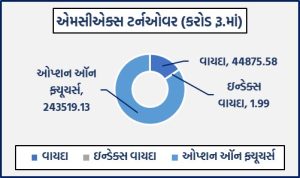 મુંબઈઃ દેશના અગ્રણી કોમોડિટી ડેરિવેટિવ્ઝ એક્સચેન્જ એમસીએક્સ પર વિવિધ કોમોડિટી વાયદા, ઓપ્શન્સ તથા ઇન્ડેક્સ ફ્યુચર્સ અને ઓપ્શન્સમાં રૂ.288396.71 કરોડનું ટર્નઓવર નોંધાયું હતું. કોમોડિટી વાયદાઓમાં રૂ.44875.58 કરોડનાં કામકાજ થયાં હતાં. કોમોડિટી વાયદા પરના ઓપ્શન્સમાં રૂ.243519.13 કરોડનું નોશનલ ટર્નઓવર નોંધાયું હતું. બુલિયન ઇન્ડેક્સ બુલડેક્સ નવેમ્બર વાયદો 29007 પોઇન્ટના સ્તરે ટ્રેડ થઈ રહ્યો હતો. કોમોડિટી ઓપ્શન્સમાં કુલ પ્રીમિયમ ટર્નઓવર રૂ.2541.34 કરોડનું થયું હતું.