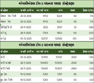 કોમોડિટી વાયદા પરના ઓપ્શન્સમાં કોલ ઓપ્શન્સની વાત કરીએ તો, ક્રૂડ તેલ ડિસેમ્બર રૂ.5200ની સ્ટ્રાઇક પ્રાઇસવાળો કોલ ઓપ્શન બેરલદીઠ રૂ.17.4 ઘટી રૂ.196 થયો હતો. જ્યારે નેચરલ ગેસ ડિસેમ્બર રૂ.420ની સ્ટ્રાઇક પ્રાઇસવાળો કોલ ઓપ્શન એમએમબીટીયૂદીઠ રૂ.2.25 વધી રૂ.33.25 થયો હતો.