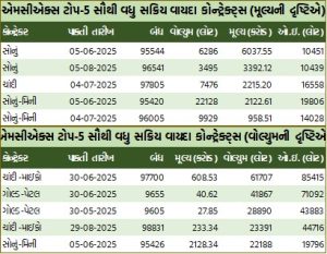 પુટ ઓપ્શન્સની વાત કરીએ તો, ક્રૂડ તેલ જૂન રૂ.5200ની સ્ટ્રાઇક પ્રાઇસવાળો પુટ ઓપ્શન બેરલદીઠ રૂ.40.9 વધી રૂ.197.3 થયો હતો. જ્યારે નેચરલ ગેસ મે રૂ.285ની સ્ટ્રાઇક પ્રાઇસવાળો પુટ ઓપ્શન એમએમબીટીયૂદીઠ રૂ.1.15 વધી રૂ.6.55 થયો હતો.