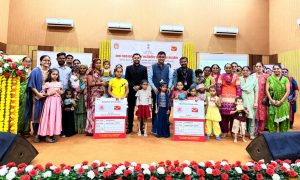 પોસ્ટમાસ્ટર જનરલ શ્રી કૃષ્ણ કુમાર યાદવે દીકરીઓને સુકન્યા સમૃદ્ધિ યોજનાની પાસબુક અને ભેટ આપતાં જણાવ્યું કે, દીકરીઓને આ યોજનાના માધ્યમથી સુરક્ષિત ભવિષ્ય આપવું દરેક પરિવારનો સંકલ્પ હોવો જોઈએ. તેમણે કહ્યું કે આ યોજના માત્ર બચતનું માધ્યમ નથી, પરંતુ દીકરીઓના સપનાઓને પાંખ આપનાર યોજના છે. શ્રી યાદવે ઉપસ્થિત તમામ લોકોને અપીલ કરી કે તેઓ નવરાત્રી જેવા પાવન તહેવાર પર દીકરીઓના નામે સુકન્યા સમૃદ્ધિ યોજના અંતર્ગત ખાતાં ખોલાવી તેમને આર્થિક ભેટ જરૂર આપે. આ અનોખા પ્રયાસ અંતર્ગત સમગ્ર ઉત્તર ગુજરાતમાં 4.77 લાખથી વધુ સુકન્યા સમૃદ્ધિ ખાતાં સંચાલિત છે અને 850 ગામોને ‘સંપૂર્ણ સુકન્યા સમૃદ્ધિ ગ્રામ’ તરીકે જાહેર કરવામાં આવ્યા છે. ગાંધીનગર મંડળમાં અત્યાર સુધી 89 હજારથી વધુ સુકન્યા સમૃદ્ધિ ખાતાં ખોલવામાં આવ્યા છે અને 286 ગામોને ‘સંપૂર્ણ સુકન્યા સમૃદ્ધિ ગ્રામ’ જાહેર કરવામાં આવ્યા છે.