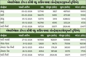 ક્રૂડ તેલના વાયદામાં રૂ.77નો સુધારોઃ કોમોડિટી વાયદાઓમાં રૂ.31920.46 કરોડ અને કોમોડિટી ઓપ્શન્સમાં રૂ.131620.03 કરોડનું ટર્નઓવરઃ સોના-ચાંદીના વાયદાઓમાં રૂ. 27772.42 કરોડનાં કામકાજઃ બુલિયન ઇન્ડેક્સ બુલડેક્સ વાયદો 30067 પોઇન્ટના સ્તરે