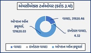 મુંબઈઃ દેશના અગ્રણી કોમોડિટી ડેરિવેટિવ્ઝ એક્સચેન્જ એમસીએક્સ પર વિવિધ કોમોડિટી વાયદા, ઓપ્શન્સ તથા ઇન્ડેક્સ ફ્યુચર્સ અને ઓપ્શન્સમાં રૂ.163544.81 કરોડનું ટર્નઓવર નોંધાયું હતું. કોમોડિટી વાયદાઓમાં રૂ.31920.46 કરોડનાં કામકાજ થયાં હતાં. કોમોડિટી વાયદા પરના ઓપ્શન્સમાં રૂ.131620.03 કરોડનું નોશનલ ટર્નઓવર નોંધાયું હતું. બુલિયન ઇન્ડેક્સ બુલડેક્સ ડિસેમ્બર વાયદો 30067 પોઇન્ટના સ્તરે ટ્રેડ થઈ રહ્યો હતો. કોમોડિટી ઓપ્શન્સમાં કુલ પ્રીમિયમ ટર્નઓવર રૂ.1418.11 કરોડનું થયું હતું.