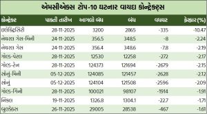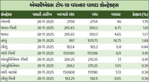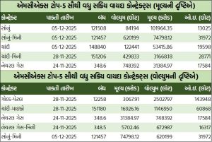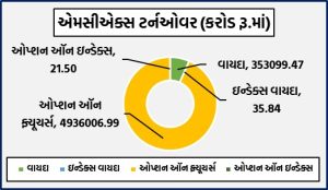 મુંબઈઃ દેશના અગ્રણી કોમોડિટી ડેરિવેટિવ્ઝ એક્સચેન્જ એમસીએક્સ પર 24થી 30 ઓક્ટોબરના સપ્તાહ દરમિયાન વિવિધ કોમોડિટી વાયદા, ઓપ્શન્સ તથા ઇન્ડેક્સ ફ્યુચર્સ અને ઓપ્શન્સમાં રૂ.5289163.81 કરોડનું ટર્નઓવર નોંધાયું હતું. કોમોડિટી વાયદાઓમાં રૂ.353099.47 કરોડનાં કામકાજ થયાં હતાં. કોમોડિટી વાયદા પરના ઓપ્શન્સમાં રૂ.4936006.99 કરોડનું નોશનલ ટર્નઓવર નોંધાયું હતું. ઇન્ડેક્સ વાયદાઓમાં રૂ.35.84 કરોડ અને ઇન્ડેક્સ ઓપ્શન્સમાં રૂ.21.5 કરોડનાં કામકાજ થયાં હતાં. બુલિયન ઇન્ડેક્સ બુલડેક્સ નવેમ્બર વાયદો 28538 પોઇન્ટના સ્તરે બંધ થયો હતો. કોમોડિટી ઓપ્શન્સમાં કુલ પ્રીમિયમ ટર્નઓવર રૂ.34680.9 કરોડનું થયું હતું.