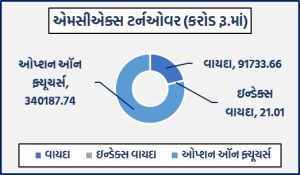 કોમોડિટી વાયદાઓમાં રૂ.91733.66 કરોડ અને કોમોડિટી ઓપ્શન્સમાં રૂ.340187.74 કરોડનું ટર્નઓવરઃ સોના-ચાંદીના વાયદાઓમાં રૂ. 80393.72 કરોડનાં કામકાજઃ બુલિયન ઇન્ડેક્સ બુલડેક્સ વાયદો 45400 પોઇન્ટના સ્તરે