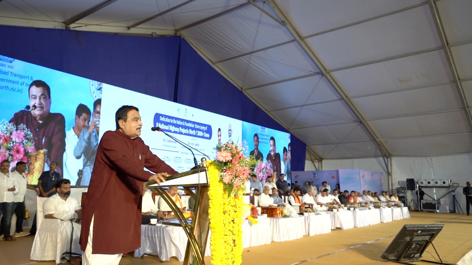 ಕೇಂದ್ರ ಭೂ ಸಾರಿಗೆ ಮತ್ತು ಹೆದ್ದಾರಿ ಸಚಿವರಾದ ಶ್ರೀ ನಿತಿನ್ ಗಡ್ಕರಿ ಅವರು ಕರ್ನಾಟಕದ ಶಿವಮೊಗ್ಗ ಜಿಲ್ಲೆಯ ಸಾಗರದಲ್ಲಿ ಇಂದು ಎರಡು ಸಾವಿರದ ನಲವತ್ತೆರೆಡು ಕೋಟಿ ರೂಪಾಯಿ ವೆಚ್ಚದ ಒಂಬತ್ತು ವಿವಿಧ ರಾಷ್ಟ್ರೀಯ ಹೆದ್ದಾರಿ ಯೋಜನೆಗಳಿಗೆ ಚಾಲನೆ ನೀಡಿ, ಶಂಕುಸ್ಥಾಪನೆ ನೆರವೇರಿಸಿದರು.