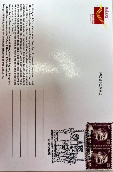 ಬೆಂಗಳೂರಿನ ಆಚಾರ್ಯ ಇನ್ಸ್ಟಿಟ್ಯೂಟ್ ಆಫ್ ಟೆಕ್ನಾಲಜಿಯಲ್ಲಿರುವ ಅಚಿತ್ ನಗರ ಅಂಚೆ ಕಚೇರಿಯನ್ನು ಕರ್ನಾಟಕದ ಮೊದಲ ಜನರೇಷನ್ ಝಡ್- ನವೀಕರಿಸಿದ ಅಂಚೆ ಕಚೇರಿಯಾಗಿ ಭಾರತೀಯ ಅಂಚೆ ಅನಾವರಣಗೊಳಿಸಿದೆ. ಯುವ ಸ್ನೇಹಿ, ತಂತ್ರಜ್ಞಾನ ಆಧಾರಿತ ಸ್ಥಳವಾಗಿ ವಿನ್ಯಾಸಗೊಳಿಸಲಾದ ಈ ಉಪಕ್ರಮವು ಯುವ ಪೀಳಿಗೆಯ ಆದ್ಯತೆಗಳೊಂದಿಗೆ ಹೊಂದಿಕೊಳ್ಳುವ ಡಿಜಿಟಲ್ ಪ್ರವೇಶ, ಸೃಜನಶೀಲ ವಿನ್ಯಾಸ ಮತ್ತು ಸಮುದಾಯ ತೊಡಗಿಸಿಕೊಳ್ಳುವಿಕೆಯನ್ನು ಸಂಯೋಜಿಸುವ ಗುರಿಯನ್ನು ಹೊಂದಿದೆ.