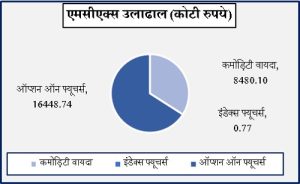 एमसीएक्सवर 1 मे रोजी सायंकाळी 5-30 वाजेपर्यंत विविध कमोडिटी वायदा, ऑप्शन्स आणि इंडेक्स फ्यूचर्समध्ये 24929.60 कोटी रुपये उलाढाल नोंदवली गेली. कमोडिटी वायदामध्ये 8480.1 कोटी रुपयांची उलाढाल झाली, तर कमोडिटी ऑप्शन्समध्ये 16448.74 कोटी रुपयांची (कल्पनात्मक) उलाढाल झाली. बुलियन इंडेक्स बुलडेक्स मे वायदा 21254 अंकांच्या पातळीवर ट्रेड करत होता. कमोडिटी ऑप्शन्समध्ये एकूण प्रीमियम उलाढाल 376.45 कोटी रुपये होती.