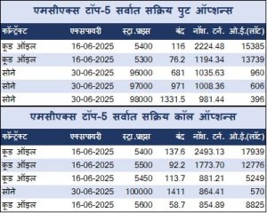 मुंबई: देशातील आघाडीचे कमोडिटी डेरिव्हेटिव्ह एक्सचेंज, एमसीएक्सवर कमोडिटी वायदा, ऑप्शन्स आणि इंडेक्स फ्युचर्समध्ये 66442.99 कोटी रुपयांची उलाढाल नोंदवण्यात आली. कमोडिटी वायदामध्ये 20726.25 कोटी रुपयांची उलाढाल झाली, तर कमोडिटी ऑप्शन्समध्ये 45712.94 कोटी रुपयांची (कल्पनात्मक) उलाढाल झाली. बुलियन इंडेक्स बुलडेक्स जून वायदा 22875 अंकांच्या पातळीवर ट्रेड करत होता. कमोडिटी ऑप्शन्समध्ये एकूण प्रीमियम उलाढाल 762.16 कोटी रुपये होती.