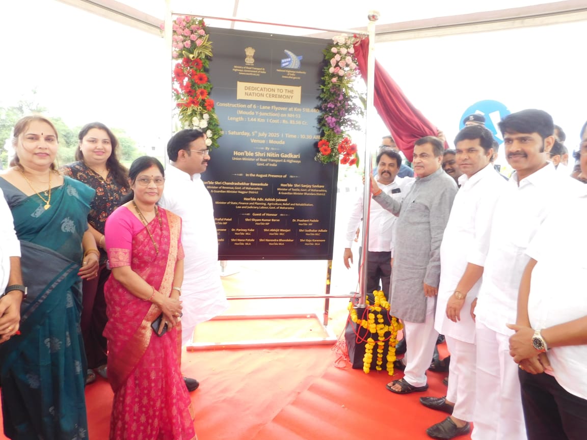 तत्पुर्वी आज सकाळी नागपूर जिल्ह्याच्या भंडारा रोडवरील मौदा वाय जंक्शन येथे असलेल्या सहा पदरी उड्डाणपुलाचे लोकार्पण केले .या पुलाची लांबी 1.44 किलोमीटर असून सुमारे 84 कोटी रुपयांच्या तरतुदीने हा पूल बांधण्यात आला आहे .या उड्डाणपुलामुळेमौदा वाय जंक्शन वरील वाहतुकीमध्ये सुधारणा येऊन येथील दुर्घटना टळणार आहेत .