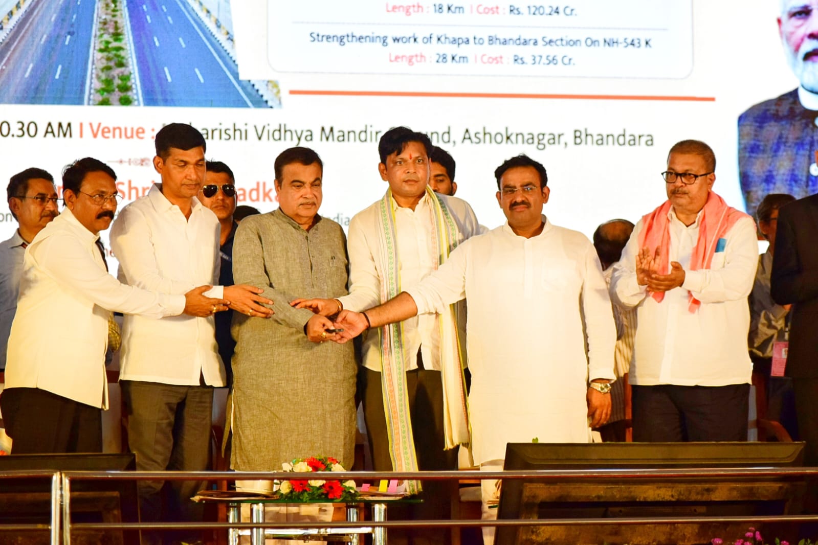 आज मानेगाव येथील व्हेहीकुलर ओवरपास व ब्लॅक स्पॉट सुधारणा लांबी -1.9 कि.मी,बपेरा ते तुमसर राज्य मार्ग लांबी 18 कि.मी आणि खापा ते भंडारा राज्य मार्गाचे डांबरीकरण व मजबुतीकरण लांबी 28 कि.मी या तीन कामाचे डिजीटल भुमीपुजन संपन्न झाले.तसेच भंडारा बायपास व मौदा वाय जंक्शन 6 लेन उडडाणपुल या दोन विकासकामांचे डिजीटल लोकार्पण गडकरी यांच्या हस्ते झाले.सकाळी वैनगंगा नदीवर जलपुजन व भंडारा बायपासची पाहणी केल्यानंतर महर्षी विदयामंदीर येथील कार्यक्रमास ते उपस्थित होते.