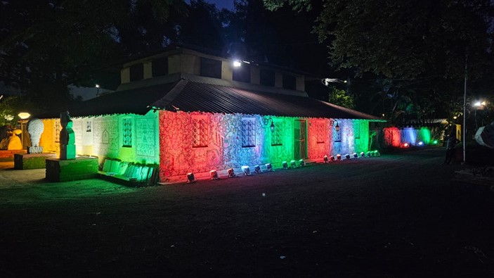 नागपूर, 5 ऑगस्ट 2025. 2 ते 15 ऑगस्ट 2025 दरम्यान साजरे होत असलेल्या देशव्यापी “हर घर तिरंगा” अभियानाचा एक भाग म्हणून, सांस्कृतिक मंत्रालयाच्या अंतर्गत येणाऱ्या दक्षिण मध्य क्षेत्र सांस्कृतिक केंद्र (SCZCC), नागपूरच्या नागरिकांमध्ये एकता, देशभक्ती आणि अभिमानाची भावना निर्माण करण्यासाठी अनेक कार्यक्रमांचे आयोजन करत आहे. या प्रसंगाचे औचित्य साधून, केंद्राचा परिसर आकर्षक तिरंगी रोषणाईने सजवण्यात आला आहे. यामुळे मोहिमेच्या भावनेचे प्रतिध्वनी करणारे एक आकर्षक वातावरण निर्माण झाले आहे. राष्ट्रध्वजाच्या रंगांनी मने आणि घरे उजळून निघत आहे.