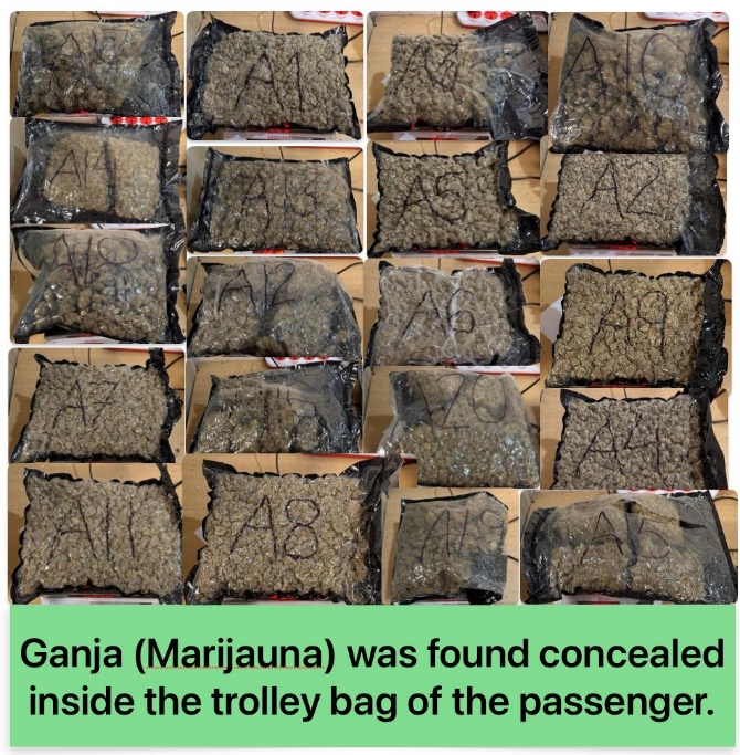प्रकरण 1 – सीमाशुल्क विभागाच्या मुंबई झोन-3 च्या अधिकाऱ्यांनी त्यांना मिळालेल्या खात्रीलायक माहितीच्या आधारे छत्रपती शिवाजी महाराज आंतरराष्ट्रीय विमानतळावर, बँकॉकहून मुंबईत आलेल्या एका भारतीय नागरिकाची तपासणी केली. या प्रवाशाच्या सामानाची आणि वैयक्तिक झडती घेतली असता, त्याच्याकडे 9662 ग्रॅम वजनाचा (अंदाजे बाजार मूल्य 9.662 कोटी रुपये) गांजा (हायड्रोपोनिक वीड) जप्त करण्यात आला. हा गांजा प्रवाशाने स्वतःसोबत आणलेल्या सामानात लपवण्यात आला होता. अमली पदार्थ विरोधी कायद्यातील (NDPS Act) तरतुदीनुसार या प्रवाशाकडे आढळलेला मुद्देमाल जप्त करण्यात आला. तसेच या प्रवाशाला अटक करण्यात आली आहे.