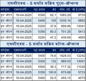 मुंबई: देशातील आघाडीचे कमोडिटी डेरिव्हेटिव्हज एक्सचेंज एमसीएक्सवर डॉ. बाबासाहेब आंबेडकर जयंतीनिमित्त संध्याकाळी पाच वाजेपर्यंतचे पहिले सत्र बंद राहिले, तर संध्याकाळी पाच वाजेपासून दुसरे सत्र नेहमीप्रमाणे सुरू राहिले. दुसऱ्या सत्रात संध्याकाळी 5:30 वाजेपर्यंत एमसीएक्सवर विविध कमोडिटी वायदा, ऑप्शन्स आणि इंडेक्स फ्यूचर्समध्ये 23,145.18 कोटी रुपयांचा टर्नओव्हर नोंदवला गेला. कमोडिटी वायदामध्ये 3062.96 कोटी रुपयांची उलाढाल झाली, तर कमोडिटी ऑप्शन्समध्ये 20081.57 कोटी रुपयांची (कल्पनात्मक) उलाढाल झाली. बुलियन इंडेक्स बुलडेक्स एप्रिल वायदा 21582 अंकांच्या पातळीवर ट्रेड करत होता. कमोडिटी ऑप्शन्समध्ये एकूण प्रीमियम उलाढाल 332.4 कोटी रुपये होती.