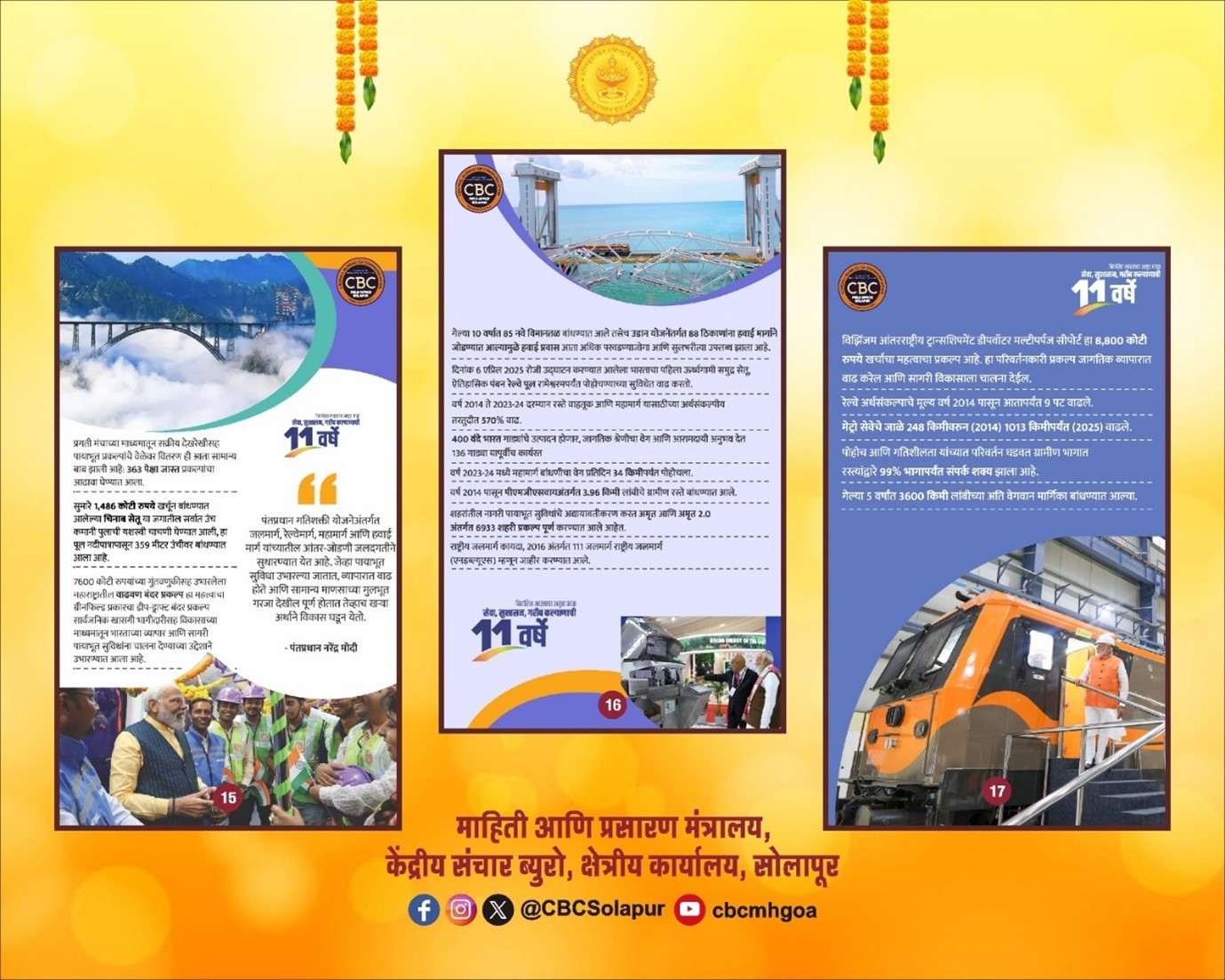 केंद्र शासनाने माघील 11 वर्षात घेतलेले निर्णय, धोरणे, उपक्रम आणि विविध कल्याणकारी योजनांची माहिती समाजातील शेवटच्या घटकापर्यंत पोहोचावी, या उद्देशाने हा उपक्रम राबविण्यात येत असून जास्तीत जास्त नागरीकांनी प्रदर्शनाचा लाभ घ्यावा, असे आवाहन तहसिलदार प्रसाद कुलकर्णी यांनी केले आहे.